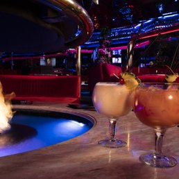 On the final night in Vegas I wasn't quite ready to end the night. I followed the convention crowd here and like so many places, even at night, there is a wait. Luckily, I opted only for Drinks, so I made my way to the Fireside Lounge. As the name implies, it's got lounge seating, fire decor, music and a full bar. You can be seated at the counter or in the one of a few lounge areas for drinks and light bites if you aren't looking for full-service food. They have the usual - wings, sliders, Nachos and more. All of it way overpriced - I believe I saw 10 wings for $20.50? My bartender really talked them up, but I wasn't bold enough to take his word on that one. I settled on some drinks which were ok, but after a few I needed something a bit stiffer. The bartender pours me a "Tropic Thunder" a berry-esque drink with 2 shots of tequila that got me going. He even gave me a bit extra and another shot (no charge) as it didn't all fit into the glass. The music was good with a bunch of genres being cycled from the 90's. My kinda place for some drinks, that considering they were cocktails, weren't too high.